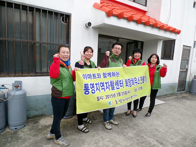 통영E-마트의 마을만들기 사업으로 통영YWCA와 함께 '희망하우스'만들기 행사를 진행하였다. 1개월에 걸쳐 통영E-마트와 통영YWCA, 통영지역자활센터가 계획을 하고, 대상자선정, 집수리 견적등의 과정을 거쳐 업체를 선정하고 시공을 거쳐 마무리하게 되었다. 도배, 장판교체, 싱크대, 신발장 교체등으로 완전히 달라진 모습에 4자녀와 함께 엄두도 못내었던 일들을 대신해주신 분들께 감사의 말을 전했고, 희망하우스가 될것이라 믿는다
