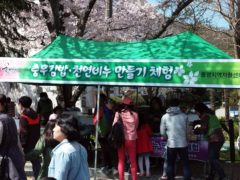 4월4~5일 양일간 개최된 봉숫골 꽃나들이 축제에 통영지역자활센터도 참가하였다. 이날에는 풍성한 충무김밥의 충무김밥 만들기 체험, 가온늘푸른매장의 천연비누만들기 체험등을 실시하였는데 , 꽃 나들이에 나온 아이들과 지역주민들의 많은 참여가 있었다. 갑자기 내린 비로 인해 행사가 짧게 진행되었지만 주민들에게는 통영을 즐기는 즐거운 행사였고, 센터는 기관과 상품을 알리는 기회가 되었다.