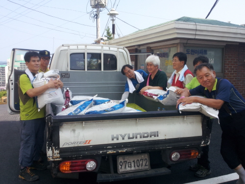 7월30일 통영기사선교회 정화영 회장을 비롯한 회원 7명이 도천동 도천아파트 단지 내 저소득주민들의 정부양곡 배송 봉사활동에 나섰다. 통영지역자활센터에서 매달 정부양곡, 경로당 양곡 등 1000여포(포당 20kg)를 배송하고 있고 그 중 도천아파트 입주세대 50여포를 이날 참석한 회원7명이 세대별 배송에 손길을 나누면서 폭염에 연신 땀을 닦아야 했고, 엘리베이트가 없는 아파트라 6층까지 지고 나르는 일이 힘들긴 했지만 마친 후 시원한 물 한잔으로 더위를 달래면서 매달 1회 정부양곡배송에 동참하기로 회원들과 약속했다.