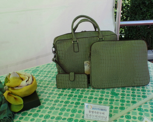 10월11일 창원용지호수공원에서 개최한 ‘2014 경남자활생산품 박람회’ 자활생산품 품평회에서 통영가온누비 제품 (제품명 : 일과 누비의 만남) 이 대상