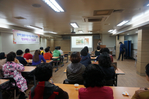 도남사회복지관 교육장에서 장애인에게 활동보조서비스를 제공하고 있는 도남사회복지관 통영지역자활센터 소속 활동보조인을 대상으로 장애학대예방및 친절교육을 시시했다.