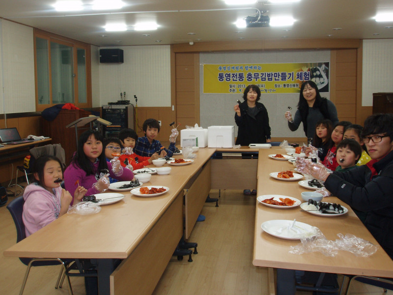 센터에서는 통영의 전통 충무김밥을 자라나는 아동들에게 널리 알리고자 통영영신애원에서 김밥만들기 체험과 시식 행사를 가졌다